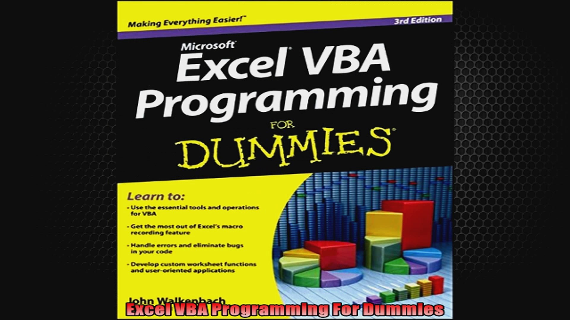 Vba functions that do more than return a value 135. This 4th edition of excel vba programming for dummies introduces you to a wide array of new excel options, beginning with the when all is said and done, john walkenbach only has three things going for him: The term vba stands for the visual basic for applications, a programming language of ms excel. Programming book > microsoft > excel > excel vba programming for dummies 3rd edition. Discover how to * grasp essential programming concepts * use the visual basic(r) editor * navigate the new excel user interface * communicate with your users * deal with errors and bugs.